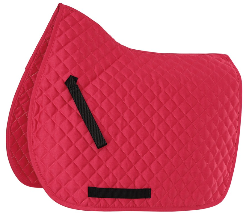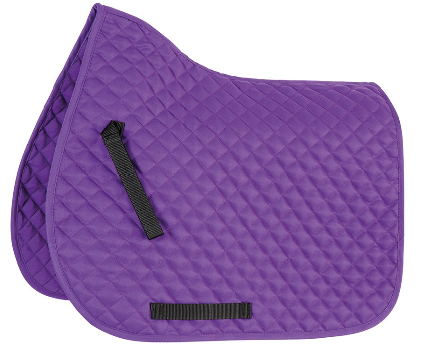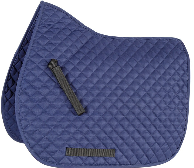 An everyday saddlecloth cut for space at the wither. Diamond quilt, touch close retaining straps and girth guides and bound edges.